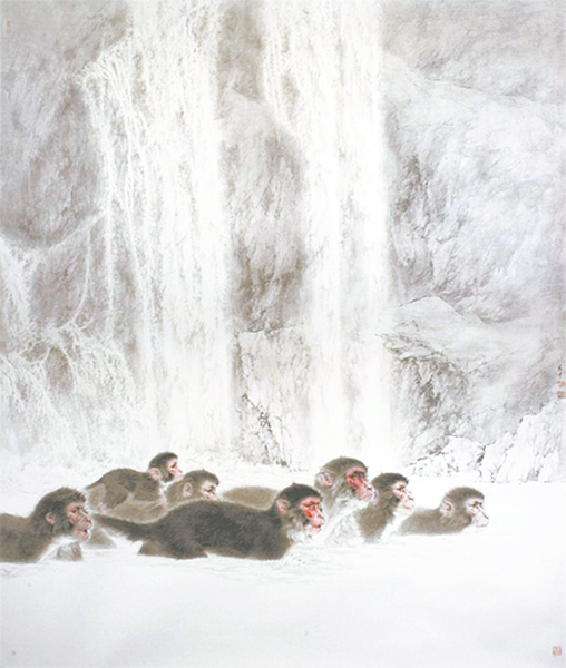 “我喜欢画猴,主要是从小受电视剧《西游记》的影响,觉得猴子是一种充满智慧和灵性的生物。”吴良才说,迄今为止,他创作了几百幅关于猴子题材的画作,如《大地赞歌》《化羽》《遇春》等。在刻画猴子的神态方面,他下了很大功夫,除了苦练技法,还到全国多个动物园甚至到深山老林去观察猴子。