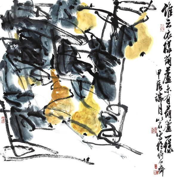 在这里,伟平的创作获得了巨大的收获。他画笔下的花鸟、山水、人物、书法均得到了新的锤炼,画得更加松弛、大气,写得更加率真、精巧。在各种观念、风格、形式、技巧不断翻新的当代美术界,伟平创作的这些作品,不跟风、不取巧,而是秉持中国传统文人画的精神和艺术旨趣,以扎实的国学根基和深厚的艺术素养,以古、以造化、以迁想妙得为师,刻苦研学,对艺术史上的名家巨匠如石涛、八大和近现代画家如缶翁、白石,特别是对自己的父亲朱家陆的绘画艺术进行了系统梳理和研究,创作出物象造型写意、笔墨语言精良的大量作品,布局大胆巧妙,墨色浓淡得宜,题款行云流水。经过多年的淬炼,他的笔墨不仅体现在他的线条功力、传统技法和对水墨的感知上,更体现在其心灵深处所养孕而成的学院派格局。