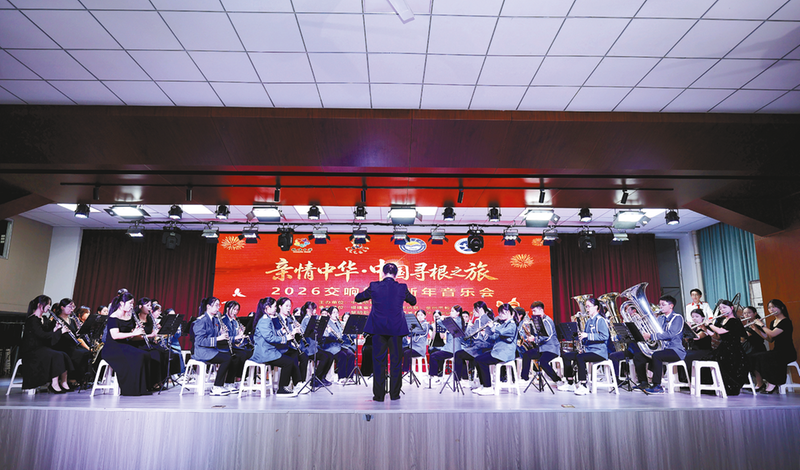 日前,2026年交响管乐新年音乐会在泉州举办。现场,36名参加2025年“亲情中华 中国寻根之旅”泉州乐团特色营的马来西亚华裔师生,与泉州华侨职校交响管乐团携手登台,带来《节日进行曲》《钢铁洪流进行曲》《 NADA RAGAMMELAYU》《WAU BULAN》等曲目,用跨越国界的旋律奏响中马文化交流的动人乐章。